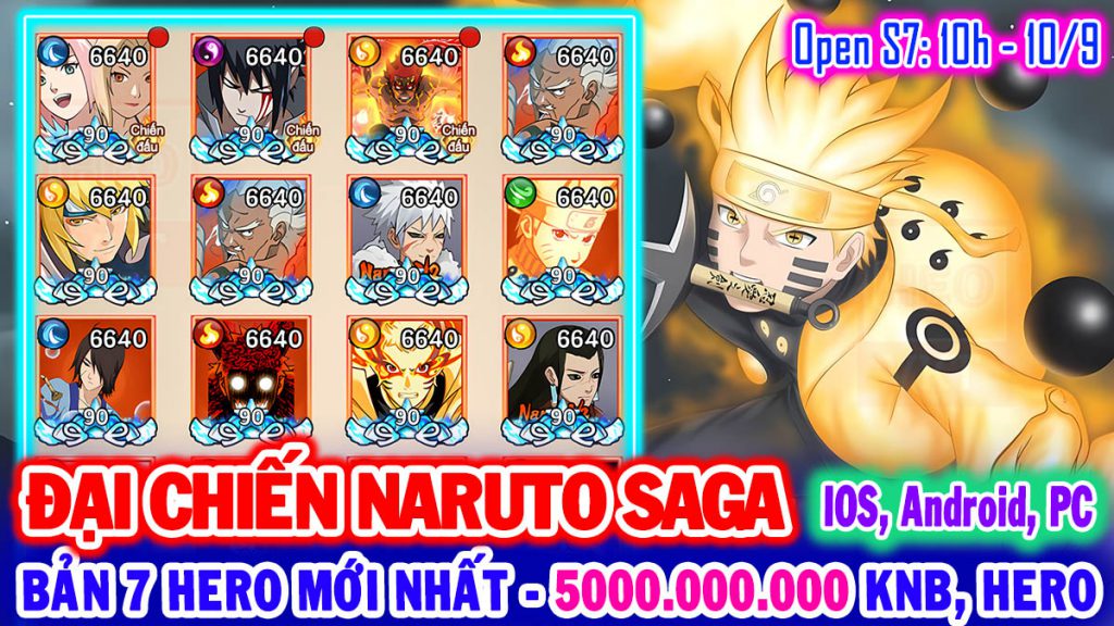 11Th9 25 All 1404: ĐẠI CHIẾN NARUTO SAGA Open S7 10h 10/9 (Android,IOS) | Bản Updata 7 Hero Mới – 500.000.000 KNB – 1.000.000 XU WEB – Box Hero Mới [HEOVKT] admin Game Free, Game Việt Hóa