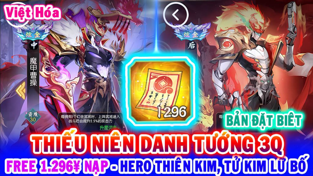 All 1422: THIỀU NIÊN DANH TƯỚNG 3Q VH (X7Game) | FREE 1.296¥ NẠP – HERO THƯƠNG KIM, THIÊN KIM LỮ BỐ UR, SSS – KNB – TỆ LẠP – VIP12 – Giảm 99.5% [HEOVKT]