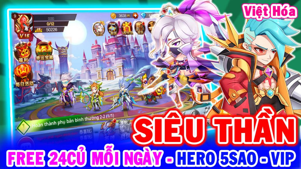 All 1427: Siêu Thần Mobile VH (X7Game) | Free 24Củ (6.480¥) Mỗi Ngày – Hero 5Sao SSS, SS – KNB – Vip – Giảm 99% [HEOVKT]