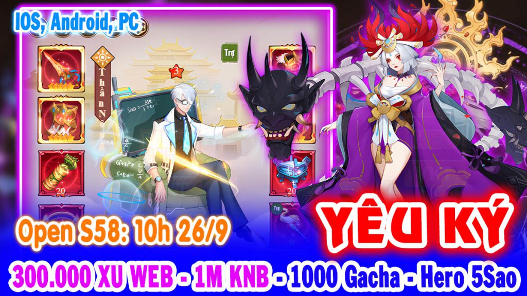 All 1479: Yêu Ký OPEN S58 – 10H 26/9 (Android,IOS) | Free 300.000 Xu Web – 1.000.000 KNB – V18 – 1000 Lượt Gacha – Rương Trang bị – Rương Hero – EXp Hero – Đồng [HEOVKT]