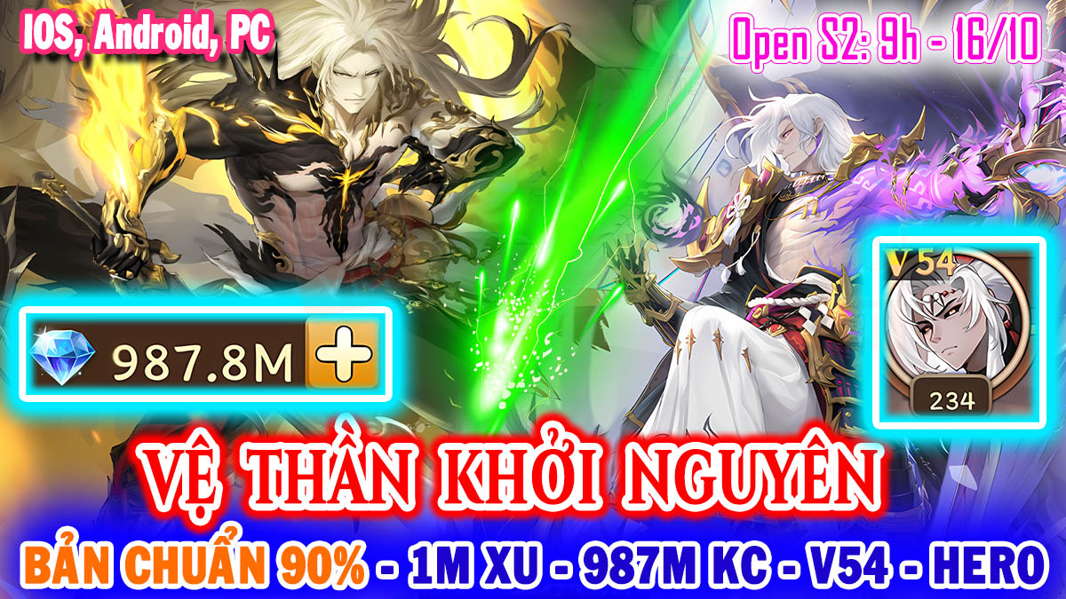 Vệ Thần Khởi Nguyên OPEN S2 9h 16/10 (Android,IOS) 👉 Hỗ Trợ Bản Chuẩn 90% - Free 1.000.000 Xu Web - 987.000.000 KC - V54 - Hero Vip 🛑 Like...