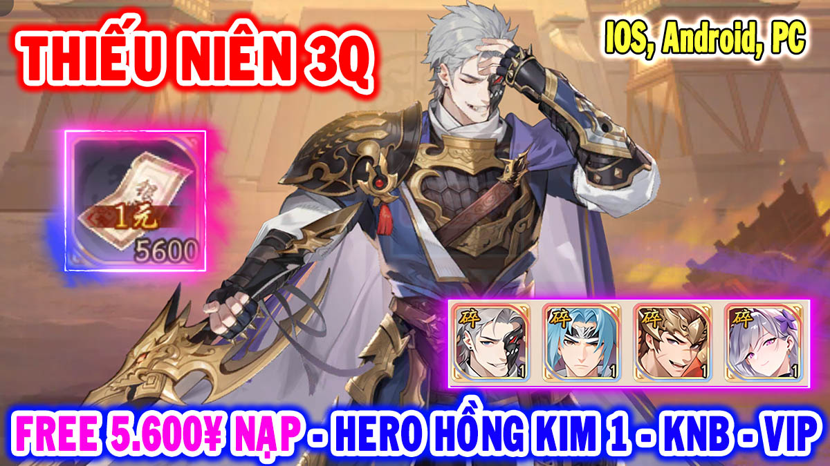 Thiếu Niên 3Q (Android,IOS) 👉 Hỗ Trợ Free 5.600¥ Nạp - Hero Hồng Kim - KNB Xanh - KNB - Vip - Hero Thương Kim, Trang Bị Thương Kim -...