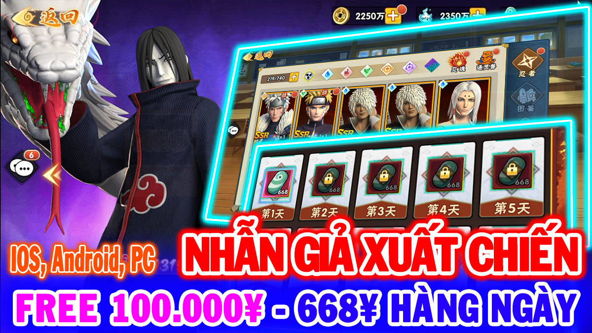 Nhẫn Giả Xuất Chiến (Android,IOS) 👉 Hỗ Trợ Free 100.000¥ - 668¥ Mỗi Ngày - 500.000 Xu Hàng Ngày - Hero SSR, SR - KC, Vip 🛑 Like và Share...