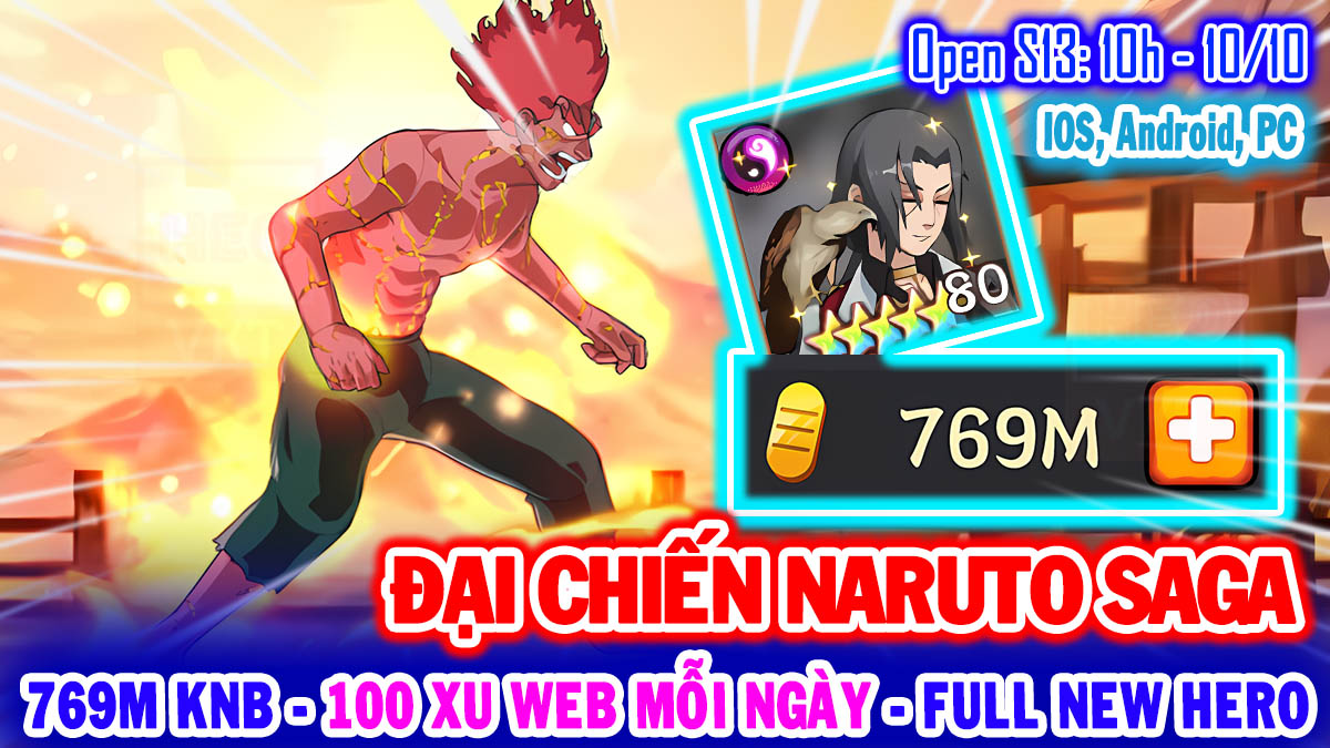 ĐẠI CHIẾN NARUTO SAGA Open S13 10h 10/10 (Android,IOS) 👉 Hỗ Trợ Bản Hero Mới Nhất - Free 769.000.000 KNB - 1.000.000 XU WEB - 100.000 Xu Mỗi Ngày - Full...