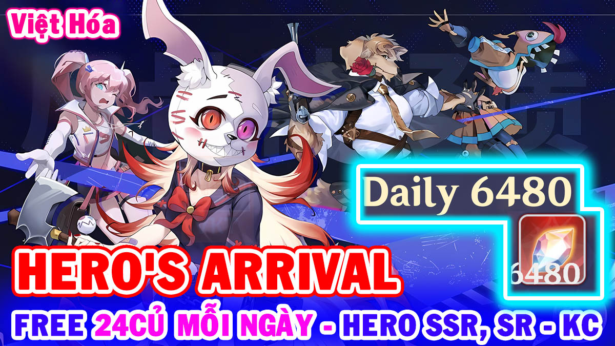 Hero's arrival (X7Game) 👉 Hỗ Trợ Free 24Củ (6.480¥) Mỗi Ngày – KC - Vip - Hero SSR, SR - 450 Vé Gacha Hero - Giảm 99% 🛑 Like và Share...