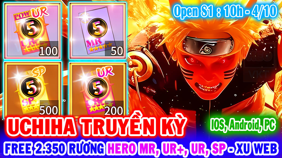 Uchiha Truyền Kỳ OPEN S1 10h 4/10 (Android,IOS) 👉 Hỗ Trợ Free 2.350 Rương Chọn Hero MR, UR+, UR, SP, SSS, SS - Xu Web - Nguyên Liệu 🛑 Like và Share Video,...